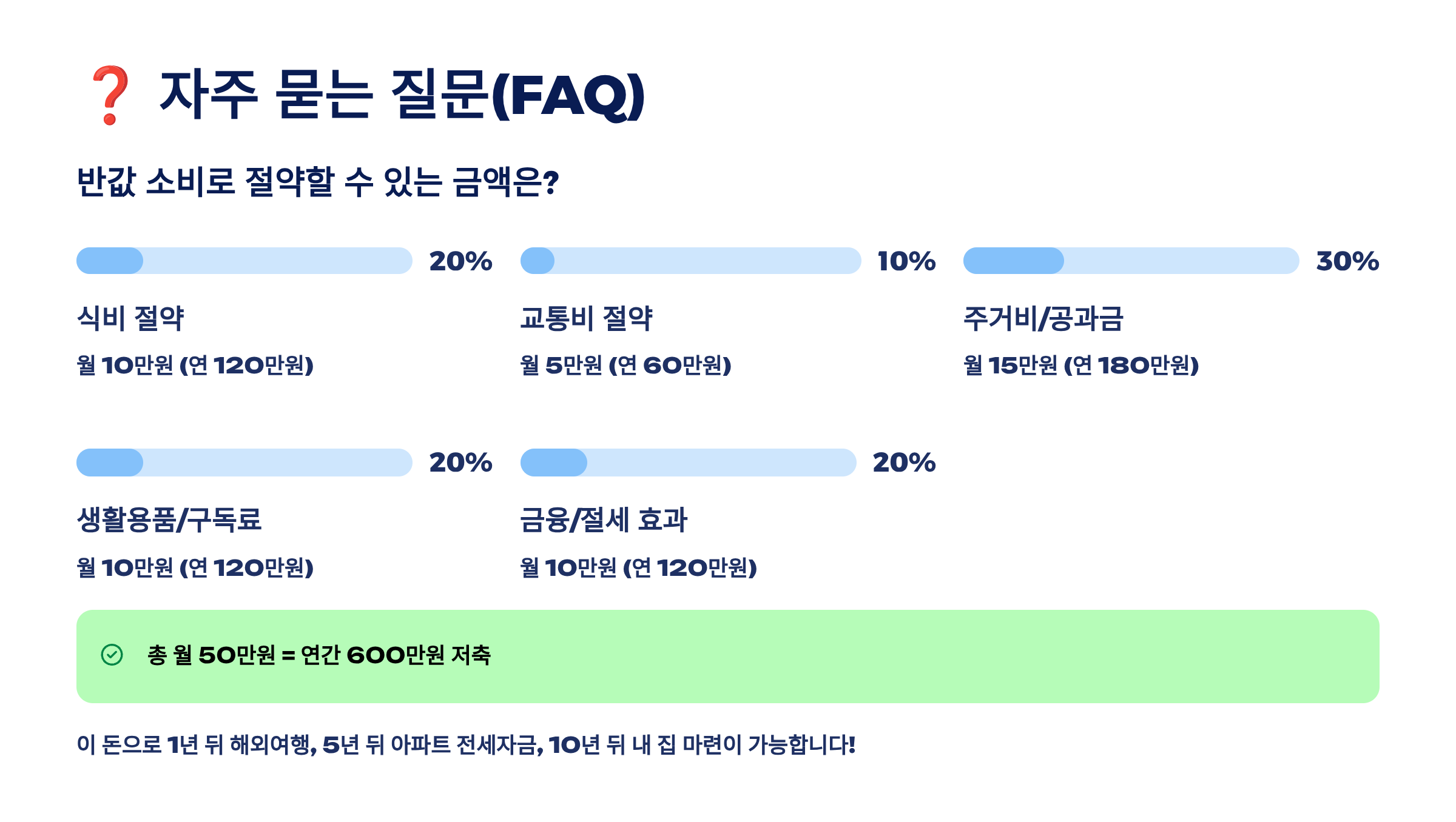 지금까지 반값 소비생활을 위한 다양한 전략과 실천법을 알아봤어요. 처음엔 어렵게 느껴질 수 있지만, 하나씩 실천하다 보면 어느새 절약이 자연스러운 생활습관이 될 거예요! 🌈