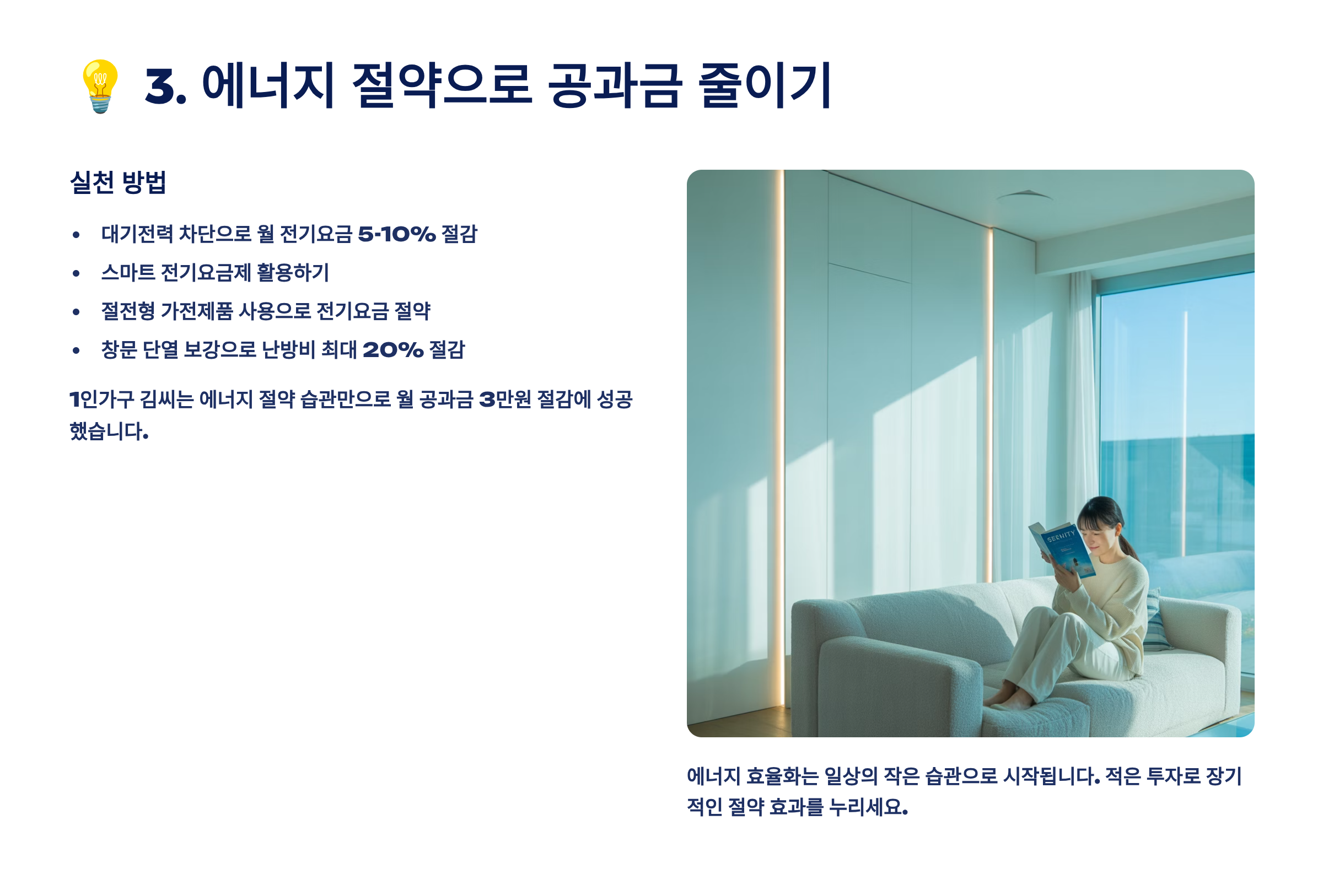 월세와 관리비는 고정비용이지만, 공과금은 우리의 노력으로 줄일 수 있는 변동비용이에요. 특히 전기료와 가스비는 계절에 따라 크게 차이나는데, 조금만 신경 쓰면 월 3-5만원은 충분히 절약할 수 있어요. 제가 실제로 실천하고 있는 에너지 절약 방법들을 공유해드릴게요!