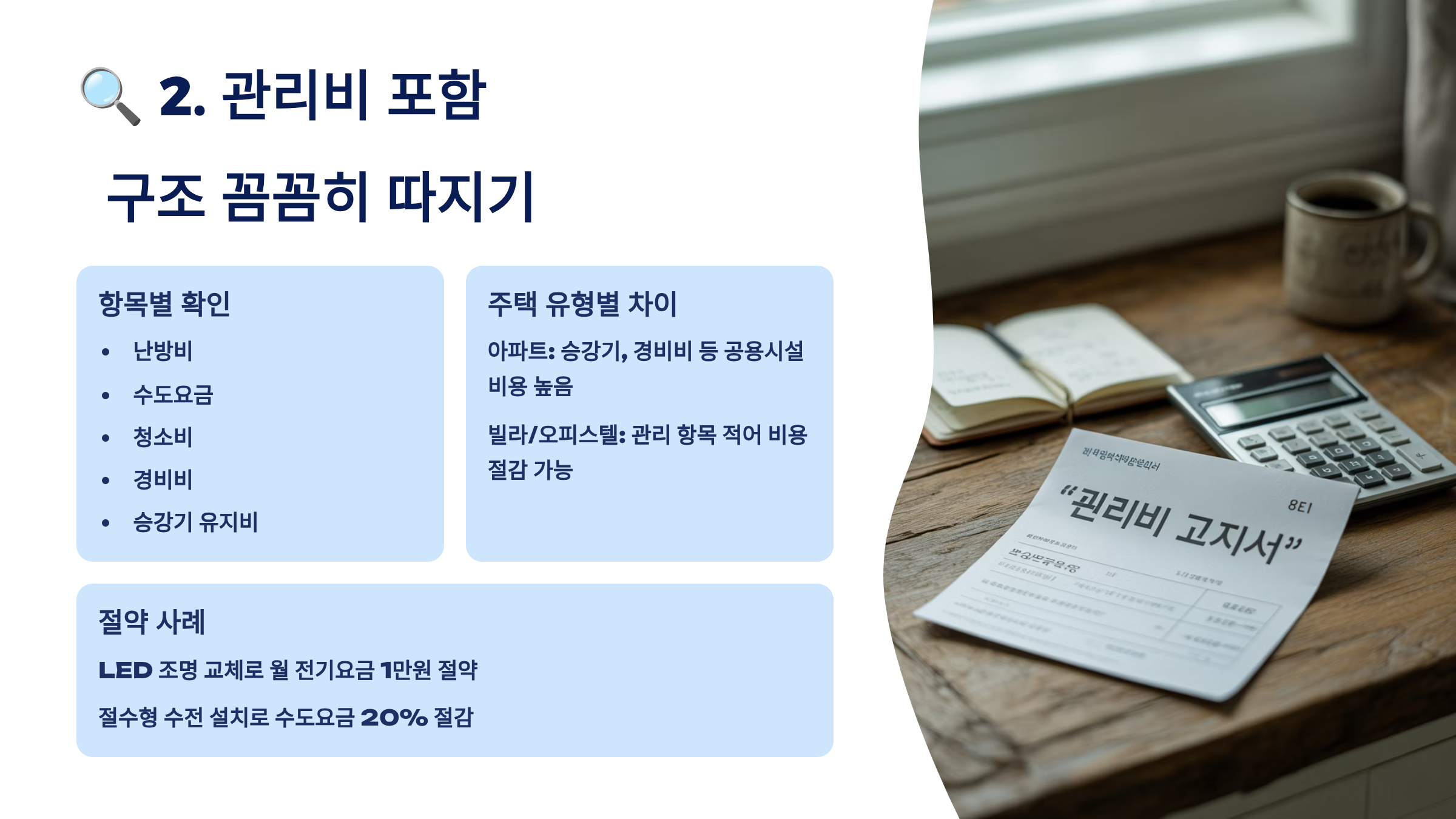 🔍 2. 관리비 포함 구조 꼼꼼히 따지기